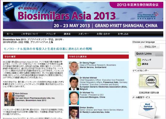 学会:「Biosimilars Asia 2013 -アジアバイオシミラー学会」