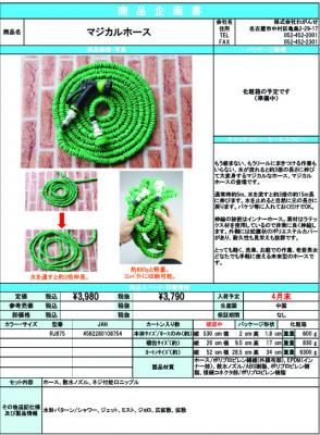 水が流れると約3倍の長さに伸びて大変身する『 マジカルホース 』が4月下旬発売解禁。(株)わがんせが発表。カラーはグリーン。希望小売価格3,980円(税込)