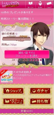 GREEゲームランキング女性カテゴリ20位以内、mixiゲームランキング総合・女性カテゴリ1位にもランクインした人気恋愛ゲーム『LovePlan ~オトナの恋愛ストーリー~』が、スマートフォン版Amebaでお楽しみいただけるようになりました。more gamesのAmeba版恋愛ゲーム第一弾リリースとなります。