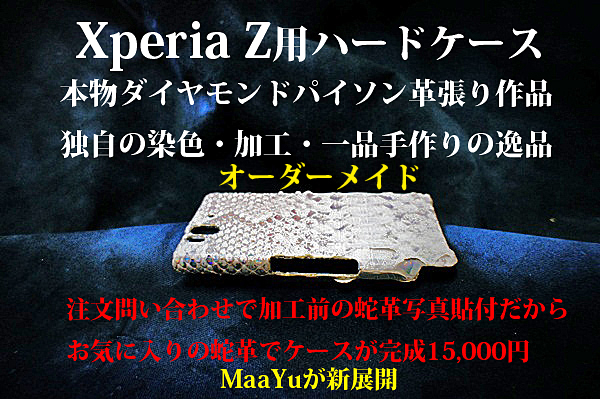 ■商品名:MaaYu ダイヤモンドパイソン蛇革Xperia Z 片面ケース (弊社製作日本製)