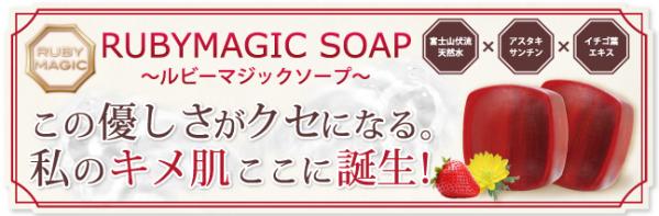 メイン商品・ルビーマジックソープは、120日かけて作る【本枠練り石鹸】製品で、石鹸ペースを一から調合し製造したこだわり。
