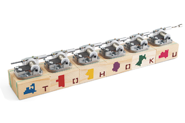 この手回しオルゴールはひとつひとつが個々のメロディーを奏でますが、6つそろえて連結し6重奏にすることでNHK東日本大震災復興支援ソング「花は咲く」が奏でられます。企画した学生たちの思いに賛同した同曲の作曲者 菅野よう子さんが編曲を手がけ、6重奏のアレンジが実現しました。