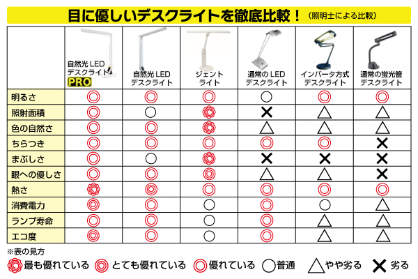 その差は、「目に優しい」として販売されている各種のスタンドと比べても、一目瞭然です。