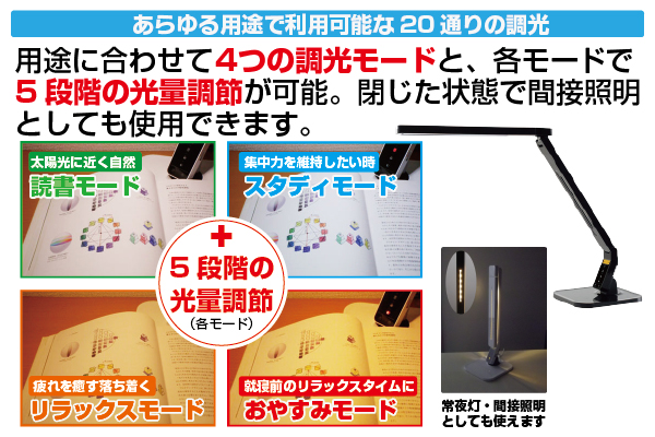 集中力を維持したい“スタディモード”、最も太陽光に近い自然な“読書モード”、
