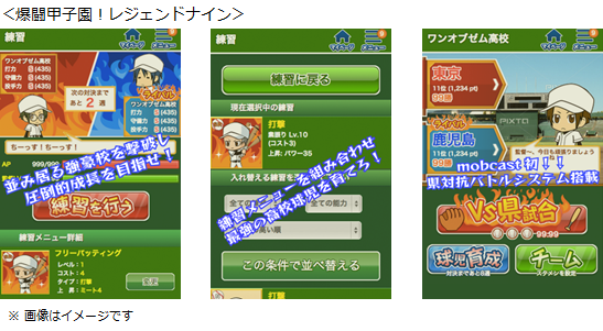 『爆闘甲子園!レジェンドナイン』は、「mobcast」において、初めてのスキームとなる下記の3つのゲームシステムを採用しています。