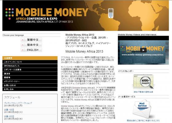 株式会社グローバル インフォメーションでは、皆様の利便性を図る為に、日本語、韓国語、中国語で「Mobile Money Africa 2013-アフリカモバイルマネー会議」の情報を提供するとともに、会議の参加のお申し込みを承っております。
