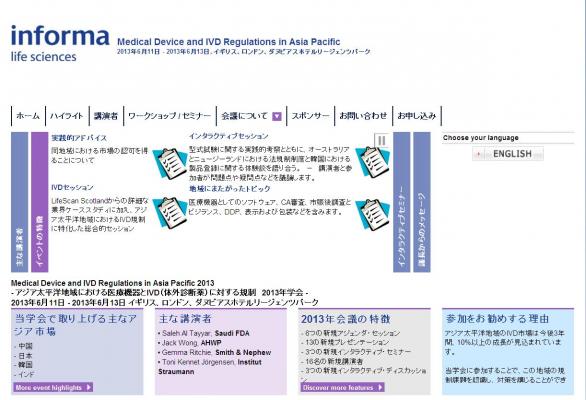 株式会社グローバル インフォメーションでは、皆様の利便性を図る為に、日本語、韓国語、中国語で「Medical Device and IVD Regulations in Asia Pacific 2013-アジア太平洋地域における医療機器とIVD(体外診断薬)に対する規制 2013年学会」の情報を提供するとともに、学会の参加のお申し込みを承っております。