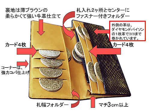 ダイヤモンドパイソン蛇革の高級長財布です。