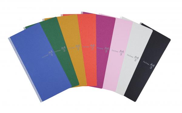 新発売となる「A4×1/3サイズ」は、2011年からプラスが展開しているメモ帳ブランド「メモローゼ」の「A4三つ折りサイズ」と同形状で、三つ折りにしたA4用紙がしっかり収まる縦長のスリムタイプです。このサイズが、持ち運びに便利な“メモ帳”としてだけでなく、しっかり書き込む “ノート”としても十分に機能することがユーザーに高く評価されたことを受けて、今回、デザイン性や耐久性をより高めた“ノート”として仕立て直すこととなりました。表紙のカラーは「くろ」、「しろがね」、「こすもす」、「ぼたん」、「しゅ」、「からし」、「ふかみどり」、「こいふじ」の全8色、中の罫線は5mm方眼罫。メーカー希望小売価格(税込)は各399円です。