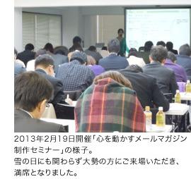 ■2013年2月開催の「心を動かすメールマガジン制作セミナー」アンケート回答を一部ご紹介いたします。