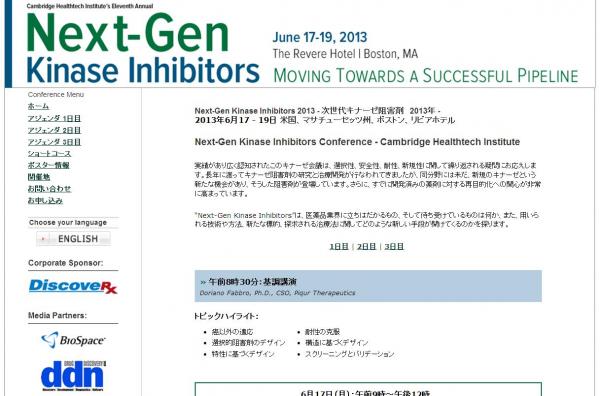 会議:「Next-Gen Kinase Inhibitors 2013 - 次世代キナーゼ阻害剤」