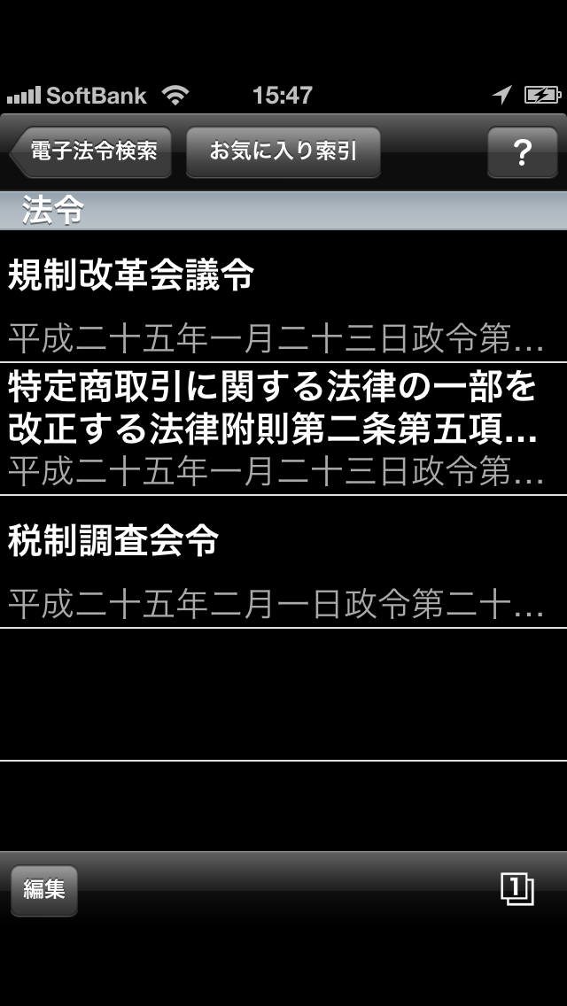 (無償で提供されているiPhone版『電子法令検索』が必要です)