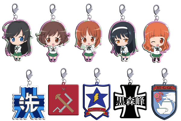 書き下ろしイラストによるアンコウチーム5名と5校の校章マークからなる全10種。カニカンがついており、ファスナーチャーム的な使い方も可能。