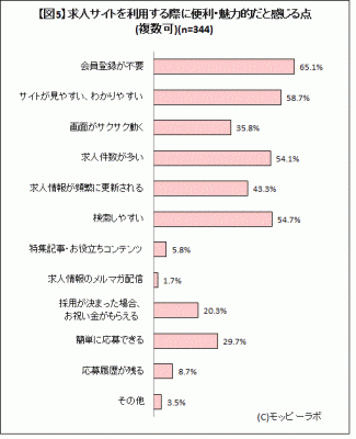 ■求人サイトで便利だと感じる点1位「会員登録が不要」(65.1%)