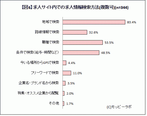 図表参照:【図6】求人サイト内での求人情報検索方法(n=344/MA)