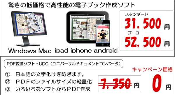 ボタン1つでPDFに変換して、電子ブックを作成できるソフトUDCを無料でプレゼントします。