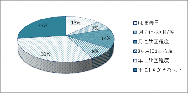 今回のアンケートでは、女性が多かったこともあり、「ほぼ毎日」着用すると答えた人は13%に留まりました。一方「年に数回程度」「年に1回以下」が多くを占め、2つの意見を合わせると過半数を越えました。