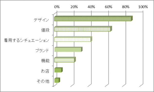 2位が値段となり、値段よりもデザインを重要視している傾向がわかりました。