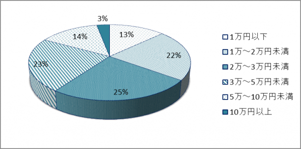 デザイン重視の女性と値段重視の男性ですが、値段の高い・安いは人それぞれ。購入予算は1万円台・2万円台・3万円台にほぼ均等に意見が分かれる結果となりました。
