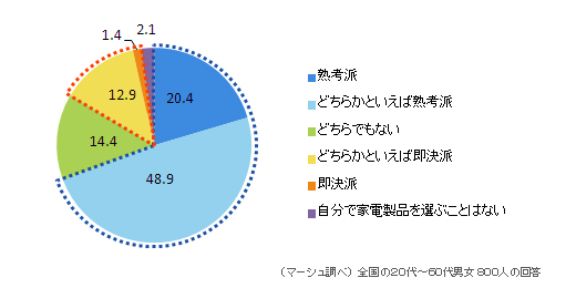 全国の20代~60代までの男女を対象に、家電製品を購入する際の自身のタイプ(熟考派・即決派)、今までに家電製品を購入して「後悔した」経験の有無や、その理由などを調査しました。