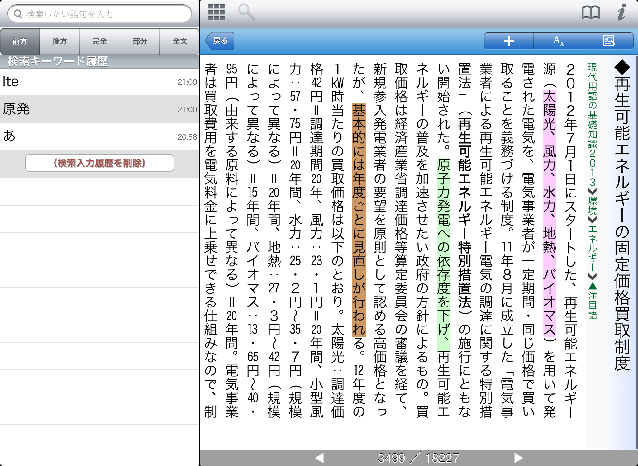 ●本文中の用語をなぞることで次々に辞書引きができるジャンプ検索機能