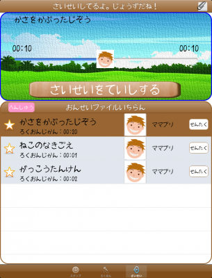 「おんどく!~ママとぼくの音読カレンダー」は、音読を通じた母親と子どもとのコミュニケーションツールとなるアプリ。子どもが音読した音声をアプリ上に録音し、時間のあるときに聴いたり、成長の記録として残しておくことができる。また子ども一人ひとりにスタンプカードが用意されており、母親が背景の絵柄を選び、子どもが好きなスタンプを押していくことで、音読に対する子どものモチベーションを高めることができる。