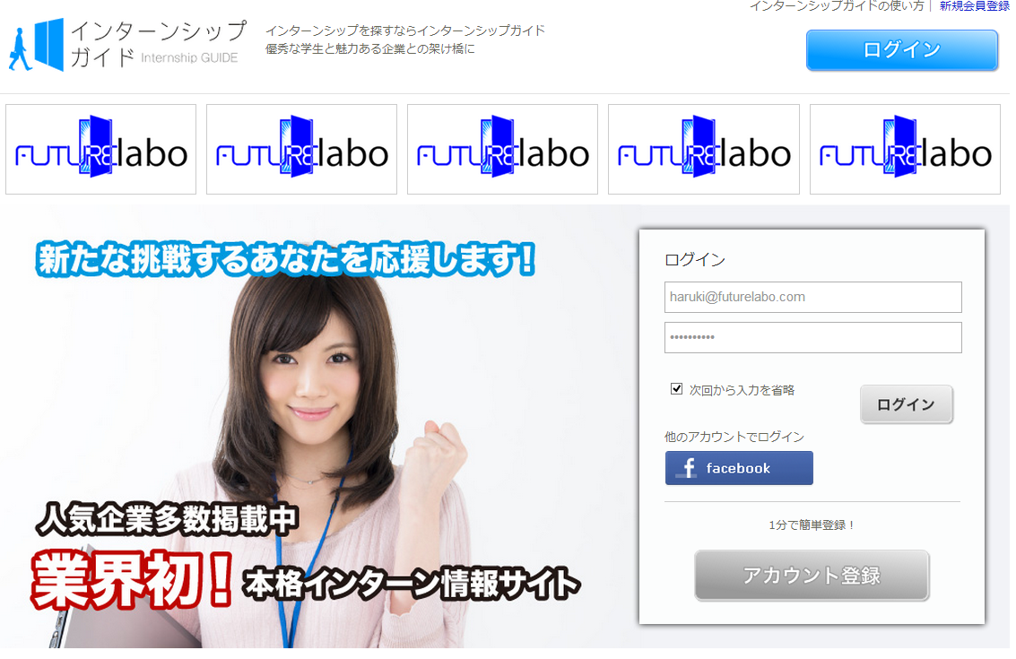 学生による、学生の為のインターンシップ専用求人サイトです。株式会社futurelaboと株式会社ユースコミュニケーションズが業務提携をし、サイト運営をさせて頂いております。