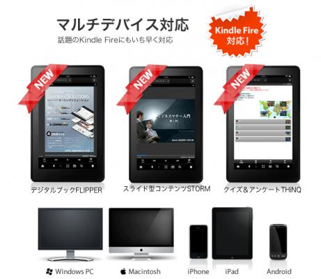 先月リリースしたKindle Fireに対応したスライド型コンテンツ作成ソフト「STORM Maker(ストームメーカー)」に続き、本日、デジタルブック作成ソフト「FLIPPER U 」とクイズ&アンケート作成ソフト「THiNQ Maker」のKindle Fire対応版を発表しました。