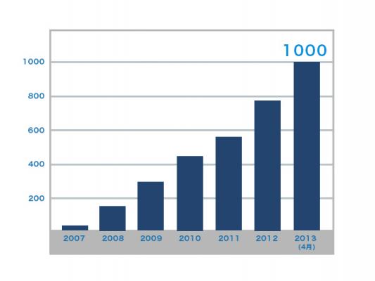 リンクナレッジは世界初の法人向けクラウド名刺管理サービスとして2007年より提供を開始いたしました。リリース以降、法人営業を行う企業を中心に大手上場企業からベンチャーまで規模・業界を問わず幅広く導入いただいています。2012年には業界シェアNo.1※1となり、2012年4月に導入企業1,000社を突破いたしました。今後は多様化するデバイスやニーズへの対応強化やパートナー提携を通じて販路をグローバルに拡大し、3年後に年間売上20億円、導入企業3,000社を目指します。