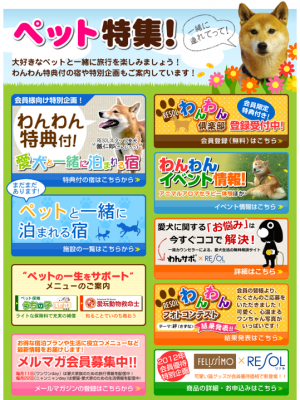 ▼会員専用WEBサイト「メンバーズナビ」の『ペット特集』ページ