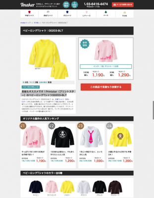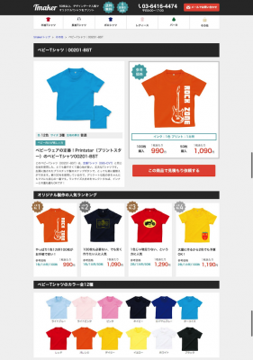 tmaker(ティーメイカー)は、オリジナルTシャツを50枚以上安価にプリント/作成したい方向けに特化したサイトです。