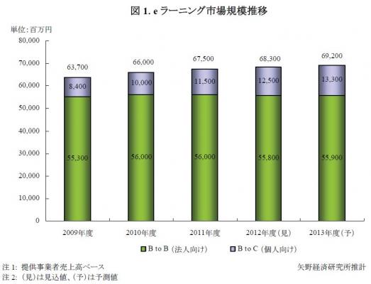 本調査におけるeラーニング市場とはインターネットまたはイントラネットを利用した学習形態を対象とし、ゲーム機やパソコン向けソフトウェアを利用したものを除く。また学習コンテンツとしては、ビジネス、教科学習、語学、IT技術、資格取得、教養・雑学など幅広いジャンルを含む。