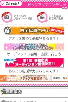 複数の芸能プロダクションと提携し、タレント・アイドルを目指した出演者達と携帯電話・スマートフォン越しに会話をして応援する☆まさに!ネット総選挙を繰り広げる、アイドル発掘・育成型のコミュニケーションサービスです!