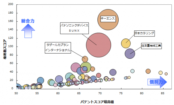 レーザーマーキングは、レーザー照射により材料表面層を除去して文字やデザインを印字する加工技術で、金属、樹脂、ガラスなど幅広い素材で使用されています。このたび株式会社パテント・リザルトは、レーザーマーキング加工技術に着目し、参入企業の競争力に関する調査を行いました。1993年から2013年2月末までに日本の特許庁で公開された関連特許1,859件を対象に、特許の質と量から総合的に見た「特許総合力ランキング」を集計しました。