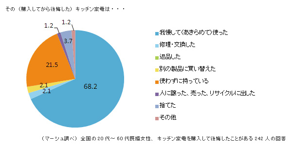 今回は、なぜ後悔したのかその理由を自由回答で記述してもらい、そのキッチン家電を、その後どうしのたかもたずねました。