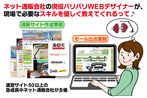 修了したのちには、通販サイト運営・通販サイト作成・通販モール出品・動画編集・商品画像編集など、