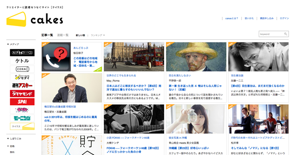 定額課金(週150円)で読み放題のメディアサイトです。cakesでは、豪華執筆陣による連載・寄稿のほか、さまざまなコンテンツホルダーの雑誌、書籍、コミック、ウェブサイトなど、多彩なコンテンツを配信するプラットフォームとして、つくり手と受け手双方にとってこれまでにない新しいメディアの形を提案しています。URL http://cakes.mu