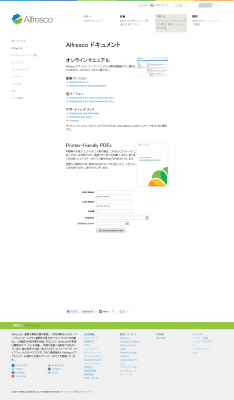 下記のリンクから、お名前、メールアドレス、国を入力し、”GET DOCUMENTATION NOW”ボタンを押すと、ダウンロードサイトのご案内が送付されますので、必要なマニュアルのリンクをクリックしご活用ください。http://www.alfresco.com/jp/resources/documentation