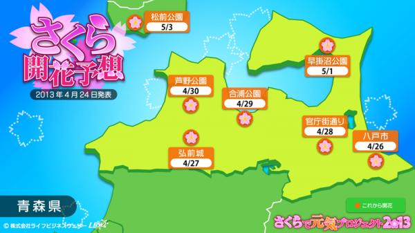 4月23日に秋田と盛岡で同時に開花宣言があり、さくら開花前線は、いよいよ東北北部へ到達しました。
