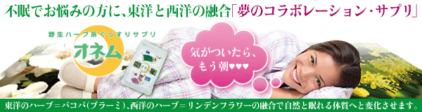 バランスボディ研究所(横浜市青葉区)は、4月30日(火)、心身にリラックスを促し、眠れる体質へと導く、野生ハーブ系ぐっすりサプリ【オネム】(http://goo.gl/2SRpB)の発売を開始したことを、お知らせいたします。