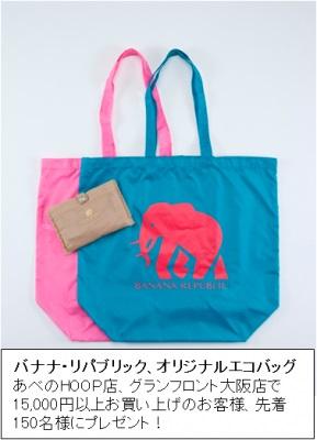 このたびのオープンを記念して、バナナ・リパブリックあべのHoop店とバナナ・リパブリックグランフロント大阪店では、15,000円以上お買い上げのお客様、先着150名様にオリジナルエコバッグをプレゼントします。また、バナナ・リパブリック・ファクトリーストア酒々井プレミアムアウトレットでは店内最大40%オフとなるオープン記念のスペシャルセールを実施します。
