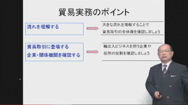 輸出入ビジネスをスムーズに進める為に必要な貿易実務のポイント、貿易書類のポイントと作成練習、貿易資格試験の概略と試験対策を学ぶ講座です。