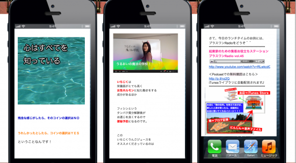 表現力豊かなHTMLメールという手法を使い、色付、画像付、図解付、動画付、音声付の