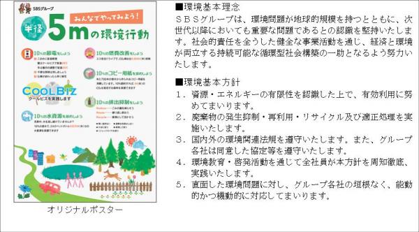 従業員ひとり一人が、自分の周りで、自分でできる小さな環境活動に取り組むよう呼びかけるスローガン。今年は、オリジナルポスターの主役として、クール・ビズのほか、次の5つの環境行動を「半径5mでやろう!」と呼びかけます。