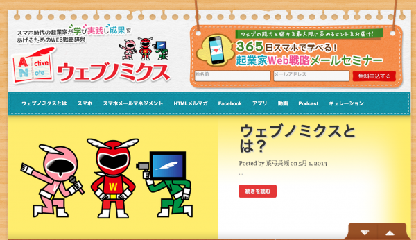 起業家のためのWEB戦略をプロデュースする株式会社アクティブノート(代表:長瀬葉弓、本社:東京都渋谷区)は、スマホ時代の起業家が学び実践し成果をあげるためのWEB戦略辞典『ウェブノミクス』(http://active-iweb.com/ )を5月1日(水)にオープン致しました。起業家が増え続ける現代、本質論からなるWEB戦略を伝える大辞典として1万人のメールセミナー会員獲得を目指し、起業家のためのリアルとWEBを掛け合わせたブレンディッドラーニングを行ってまいります。