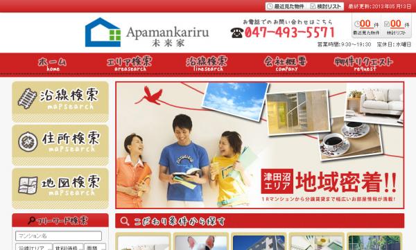 この度『株式会社アパマンカリる未来家』が運営する「アパマンカリる 未来家」のホームページは、"津田沼エリア地域密着"をコンセプトに、津田沼エリアの賃貸物件情報を扱うホームページとなっております。