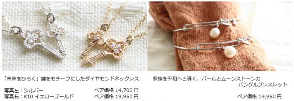 「ガラス細工ではない、ママと一緒の本物のジュエリー」に、女の子はきっと喜んでくれるはずです。もし、関心ごとがほかに移って、おもちゃ箱の奥に行ってしまっても、お嫁に行くときに、ママからペアでそっと渡してあげる。新しいママ娘に引き継がれて、さらにその次の世代へ、またその次の世代へも。こうした、いつまでも続く家族の絆の象徴になれることを、願っています。