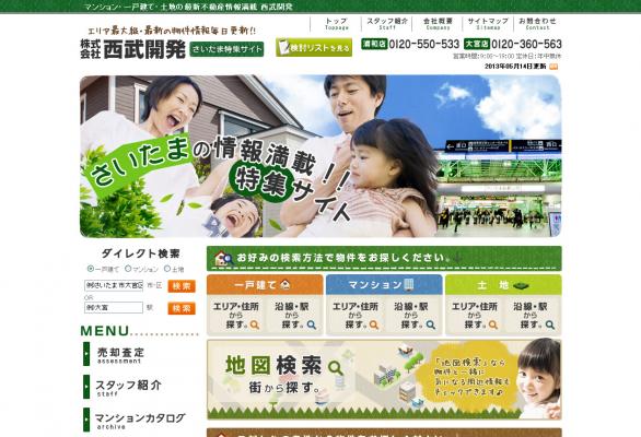 株式会社西武開発は地域密着の不動産会社として、経験豊富なスタッフがさいたま市・川口市の物件情報をスピーディ且つ精確に紹介しており、東上線沿線エリアに住みたい方のための特集サイト、西武線沿線エリアに住みたい方のための特集サイトもそれぞれ有しております。お客様のニーズに応える住まい探しのため、一戸建てからマンション、土地の情報まで幅広くご紹介することが出来ます。それら多くの情報を閲覧することができるのがこの度公開したホームページでございます。そして、株式会社西武開発は地域密着スタイルのため、周辺地域の環境、例えば激安のスーパーや便利な引越し業者様など、さいたま市・川口市・西武線沿線・東上線沿線の暮らしに役立つ情報などもご来店いただくお客様に提供でき、ホームページにもそれらの情報が反映されております。