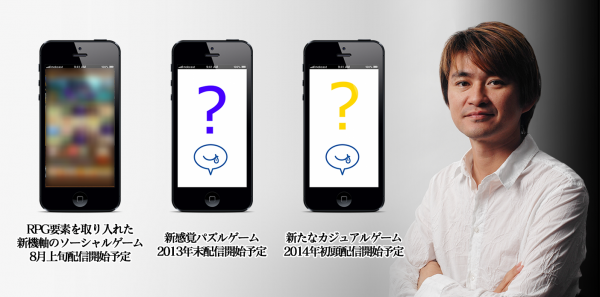 第1弾タイトルは、RPG(ロールプレイングゲーム)の要素を取り入れた新機軸のソーシャルゲームで、8月上旬の配信を予定しております。第2弾タイトルは、水口氏が得意とする新感覚のソーシャルパズルゲームで、2013年末の配信を予定しております。第3弾タイトルは、これまでにない新たなカジュアル・ソーシャルゲームになる予定であり、こちらは2014年初頭の配信を予定しております。