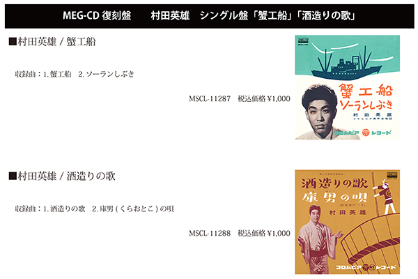 収録曲:1.蟹工船 2.ソーランしぶき MSCL-11287 税込価格¥1,000